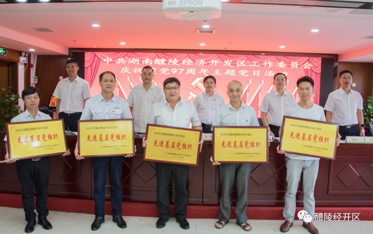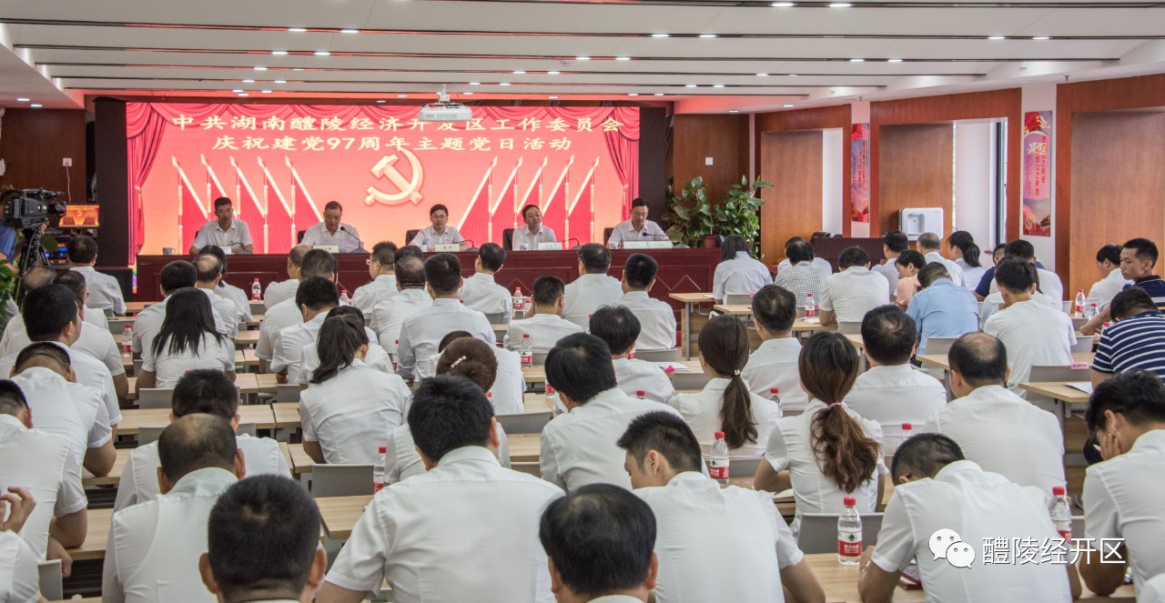 为庆祝建党97周年,时刻不忘初心,铭记党的奋斗历史,深入学习领会习近平新时代中国特色社会主义思想,全面贯彻落实党的十九大精神,7月6日,醴陵经开区党工委隆重举行“重温党的光辉历史,牢记党的宗旨初心使命”主题党日活动。经开区党工委、管委会全体领导班子成员出席。