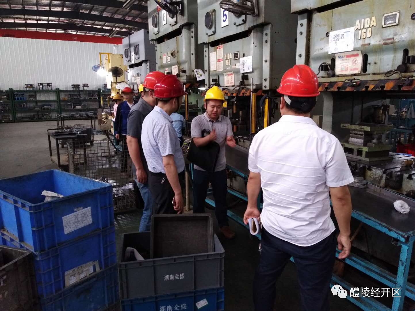 在湖南全盛精冲科技有限公司,谢圣才仔细查看了企业安全管理展板、安全检查台账、冲压机床操作等。他要求企业进一步做好防护措施;公示安全检查记录;要根据工艺流程进一步规范生产车间布局。