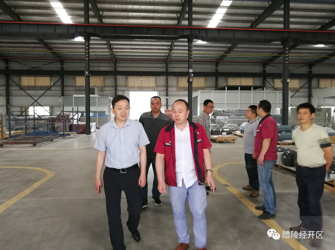 在醴特玻璃制造有限公司,谢圣才详细了解了企业生产经营情况和市场规模。他指出:要做好玻璃原片的安全堆放和机械设备的安全操作;希望该公司依托旗滨玻璃,做大做强,进一步延伸园区玻璃产业链。