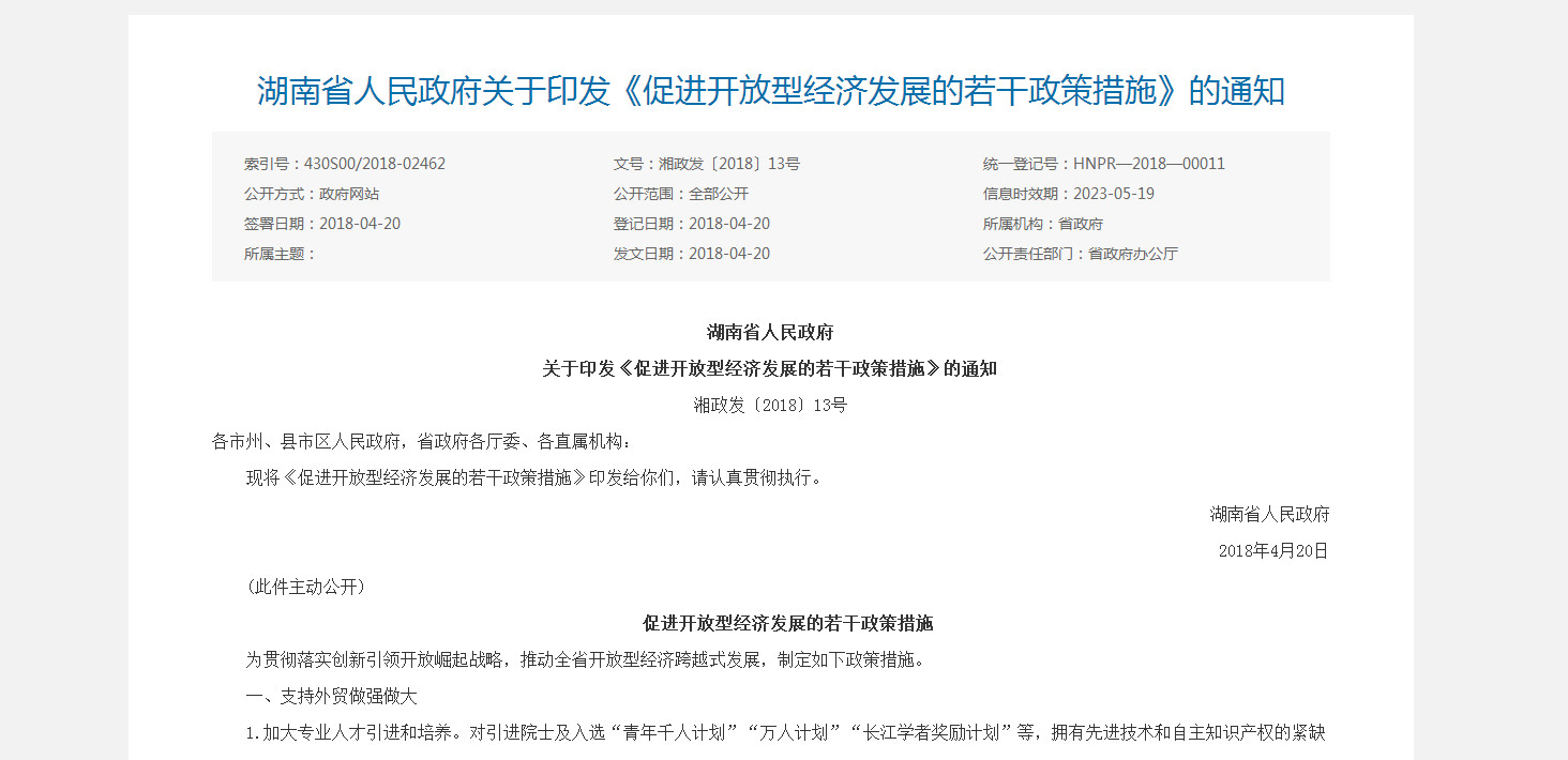 日前,湖南省政府印发《促进开放型经济发展的若干政策措施》(以下简称《政策措施》),从支持外贸做强做大、支持招大引强、支持湘企“走出去”、推进国际物流整体优化等方面出台16条政策措施,促进湖南开放型经济发展。