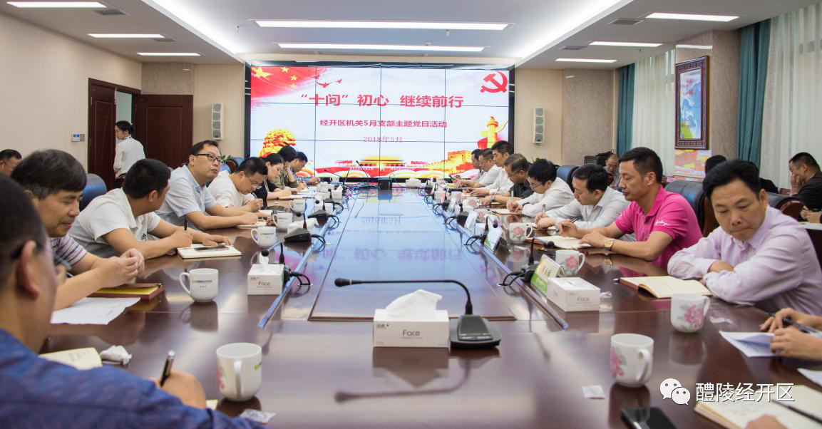 5月7日上午,根据经开区领导班子会议党建专题和机关支部支委会会议精神,按照醴陵市委组织部5月党建工作要求和“党员十问”部署推进会会议要求,经开区机关支部在机关二楼会议室举行“‘十问’初心 继续前行”主题党日活动,经开区党工委、管委会领导班子成员均以普通党员身份参加活动。