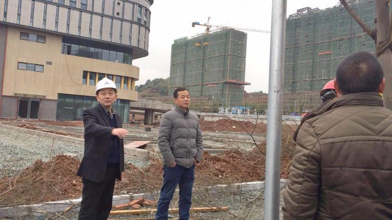 在创新创业服务中心,谢圣才走遍了1—4区的顶层,他仔细察看了屋顶的防水防渗情况,并不时向项目负责人询问工程建设细节。他敦促建设单位要及时完善相关手续,严格执行设计标准,严格保障工程质量,加快建设进度,确保五月份如期交付投入使用。