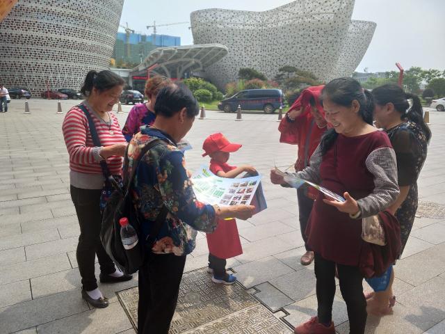 走出书吧,党员们带着孩子,身穿红马甲、头戴红帽子、手拿宣传单,变身一个个环保小卫士,在瓷器口和瓷谷向游客、商家宣传垃圾分类知识,共同守护和谐美丽家园。